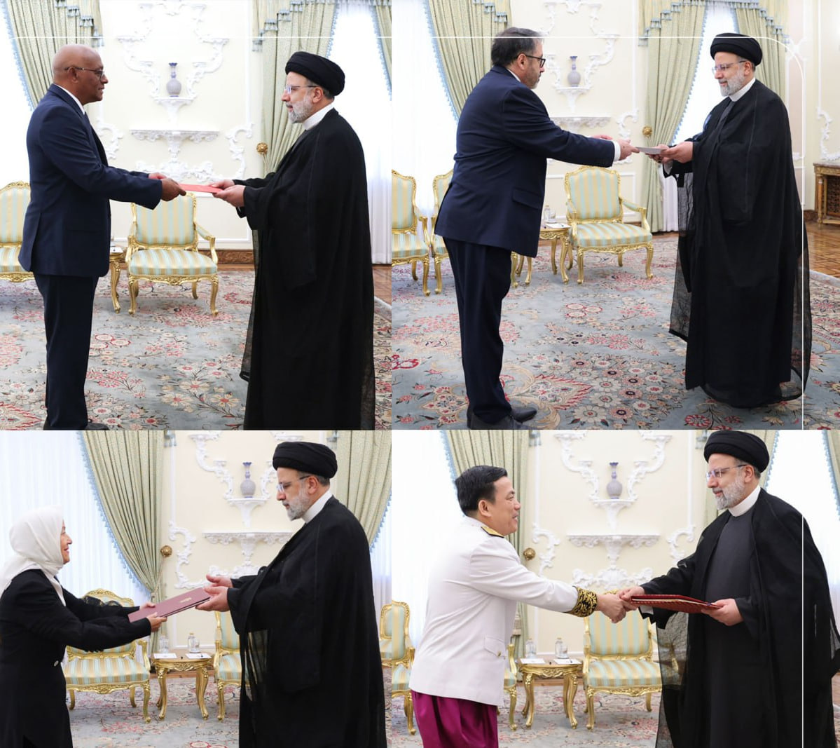 آیتالله سید ابراهیم رئیسی پیش از ظهر امروز یکشنبه – ۲۹ مردادماه – استوارنامه سفرای جدید کشورهای آنگولا، کلمبیا، کامبوج، اکوادور و پرو را دریافت کرد.