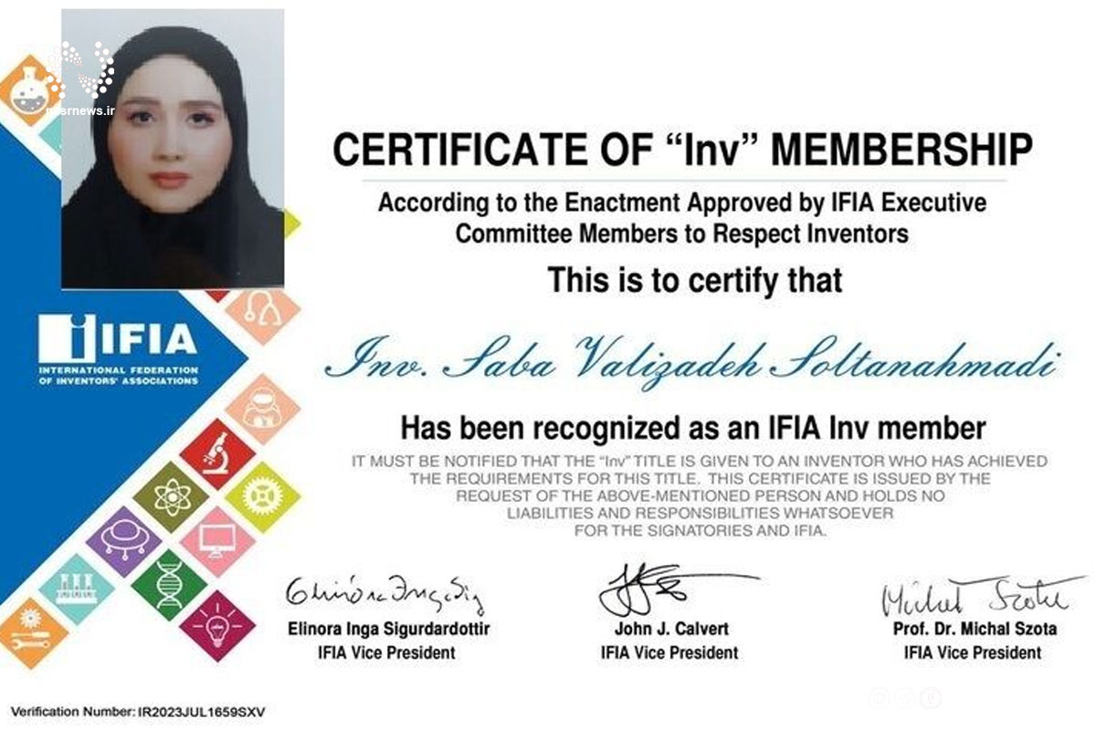 وی عضو رسمی فدراسیون جهانی مخترعین و عضو انجمن مخترعین ایران است.