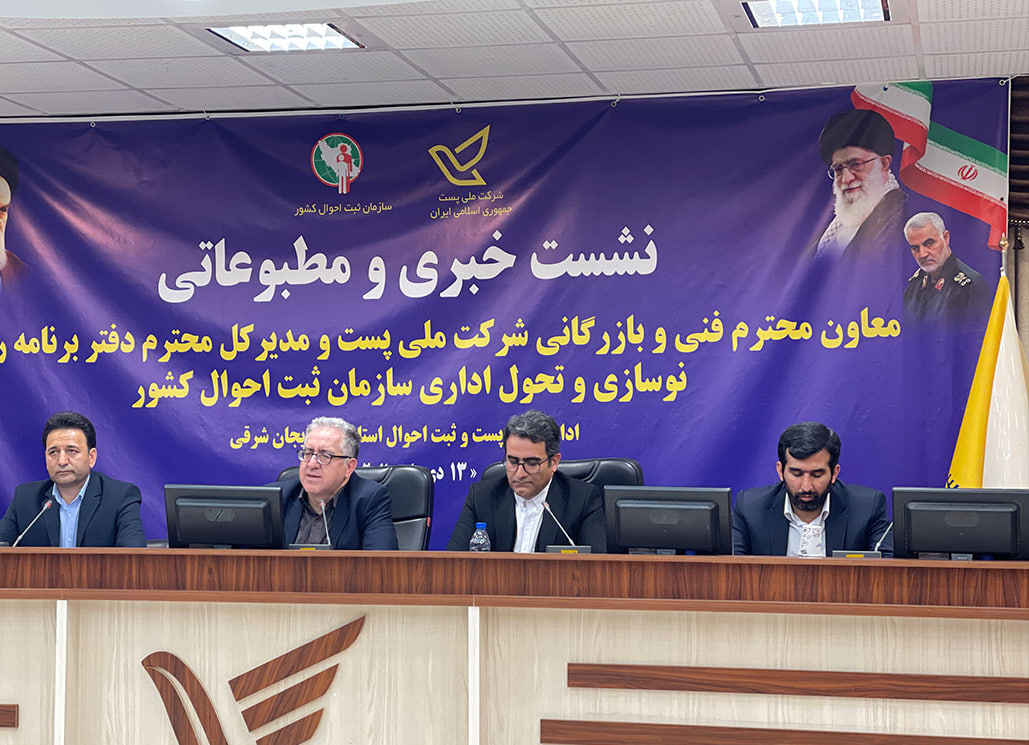 نشست خبری معاون فنی و بازرگانی شرکت ملی پست و مدیرکل دفتر برنامه ریزی نوسازی و تحول اداری سازمان ثبت احوال کشور ظهر امروز چهارشنبه ۱۳ دی با حضور مسئولین ثبت احوال و سازمان پست برگزار شد.
