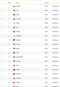مردان والیبال ایران که قبل از این مسابقه با ۱۷۷.۷۳ امتیاز در رتبه هفدهم قرار داشتند و با شکست ایالات متحده آمریکا ۱۲.۳۸ امتیاز کسب کردند.