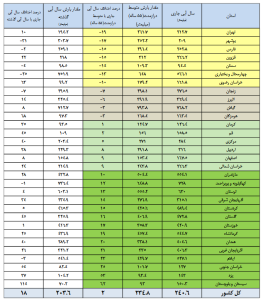 همچنین ارتفاع کل ریزشهای جوی کشور معادل ۲۴۰.۶ میلیمتر است. این مقدار بارندگی نسبت به میانگین دورههای مشابه درازمدت (۲۳۴.۸ میلیمتر) ۲ درصد کاهش و نسبت به دوره مشابه سال آبی گذشته (۲۰۳.۶ میلیمتر) ۱۸ درصد افزایش را نشان میدهد.
