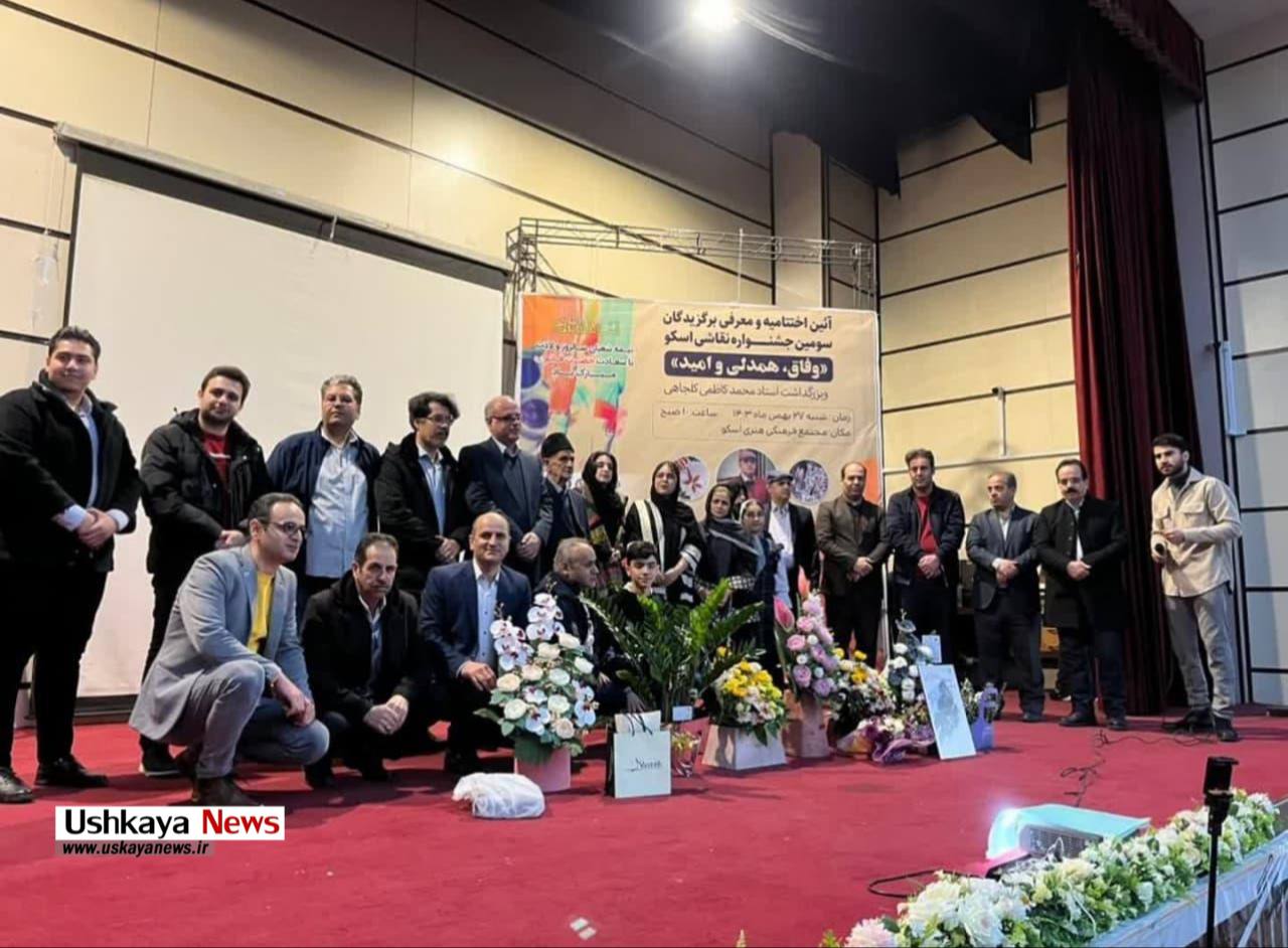 در ادامه مراسم، بیانیه هیات داوران قرائت شد و اسامی برگزیدگان در بخش های مختلف اعلام شد. همچنین از نقاش پرتوان شهرستان آقای محمدکاظمیکلجاهی نیز تجلیل به عمل آمد.